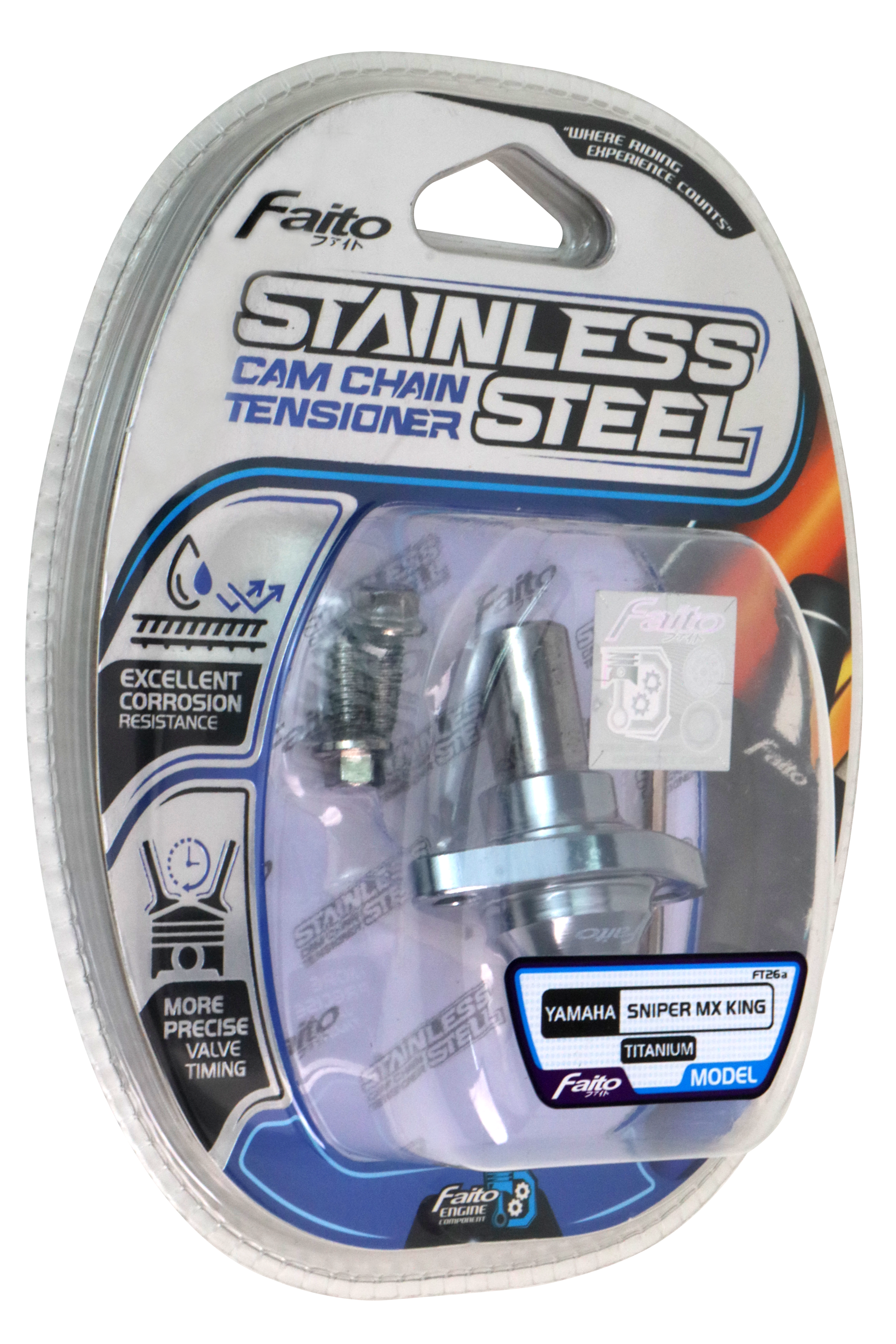 Cam Chain Tensioner or called tensioner is a component on a motorcycle engine that functions to maintain the tension of the cam chain so that the sound of the cam chain is more silent. In general, OEM cam chain tensioners are automatic in applying pressure to the cam chain by utilizing a spring in it. For certain cases, the OEM tensioner does not work on modified engines such as engine stroke up, because in this condition the length of the cam chain is no longer using a longer cam chain. This manual tensioner can be adjusted according to the needs of the rider.