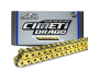 Cimeti Drago is a motorbike wheel drive chain designed and manufactured in Europe, using quality steel from Europe. The connection between the links in the chain (link) uses a rivet system so that the chain does not easily stretch or break. You are free from the activity of tightening the chain up to 15,000 Km. The surface finishing of the chain uses “gold anodized” technology so that it presents a natural and smoother gold color.