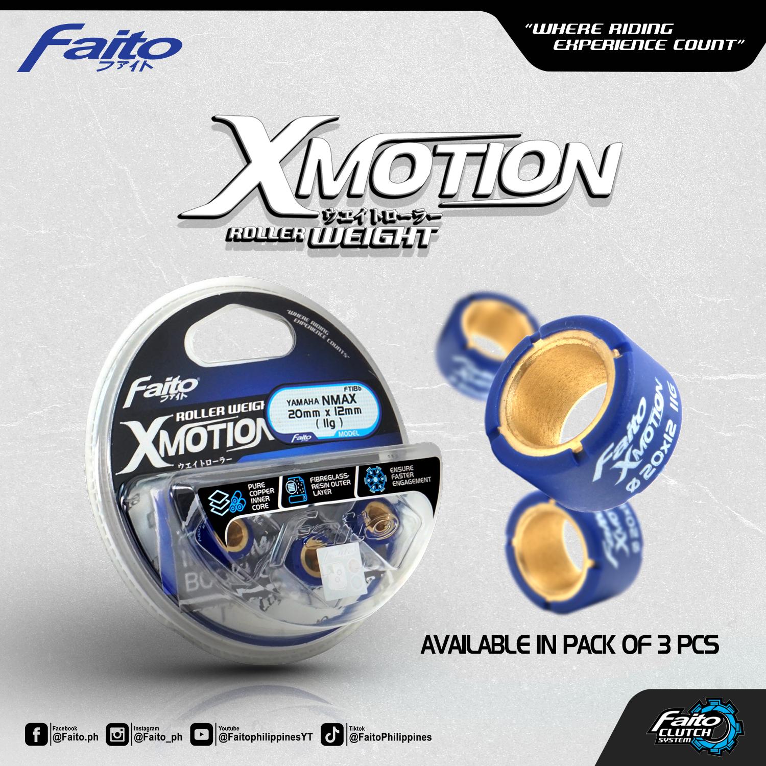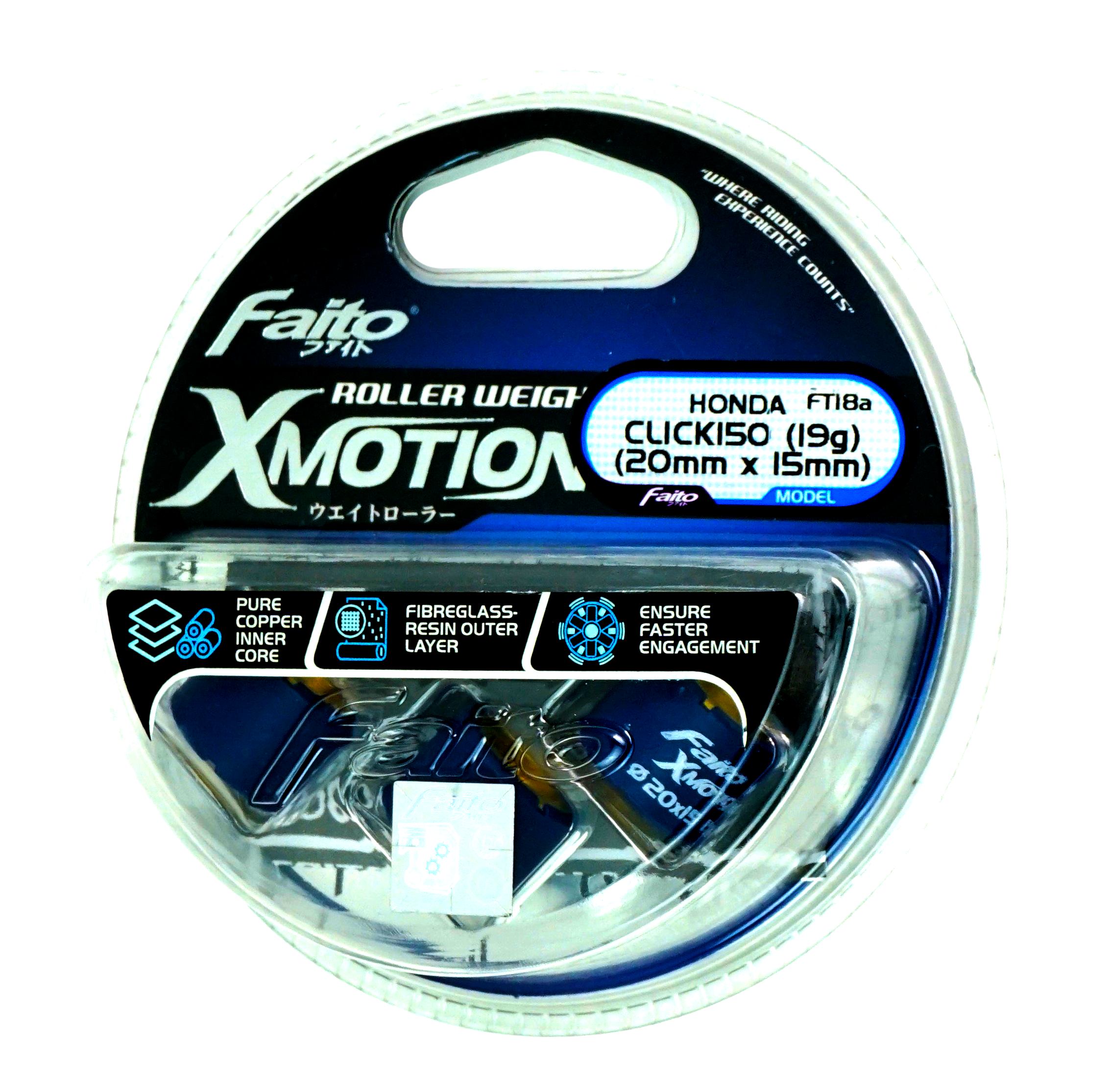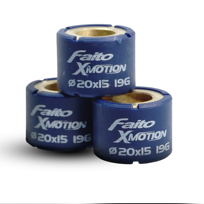 Faito racing roller weight X-motion is made from reinforce fiberglass resin material. Cooper and alloy provide consistent shape under any temperature inside of CVT system, while reinforce fiberglass resin smooth roller weight movement with less friction and increase roller weight life time. Faito roller X-motion are availbale in several weight for most scooter models in the markets. Faito roller X-motion is very suitable for daily or racing motorcycles that want maximum performance.