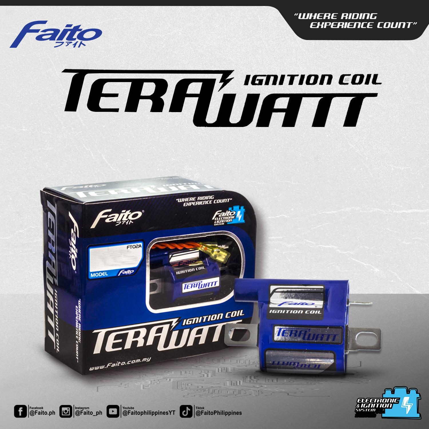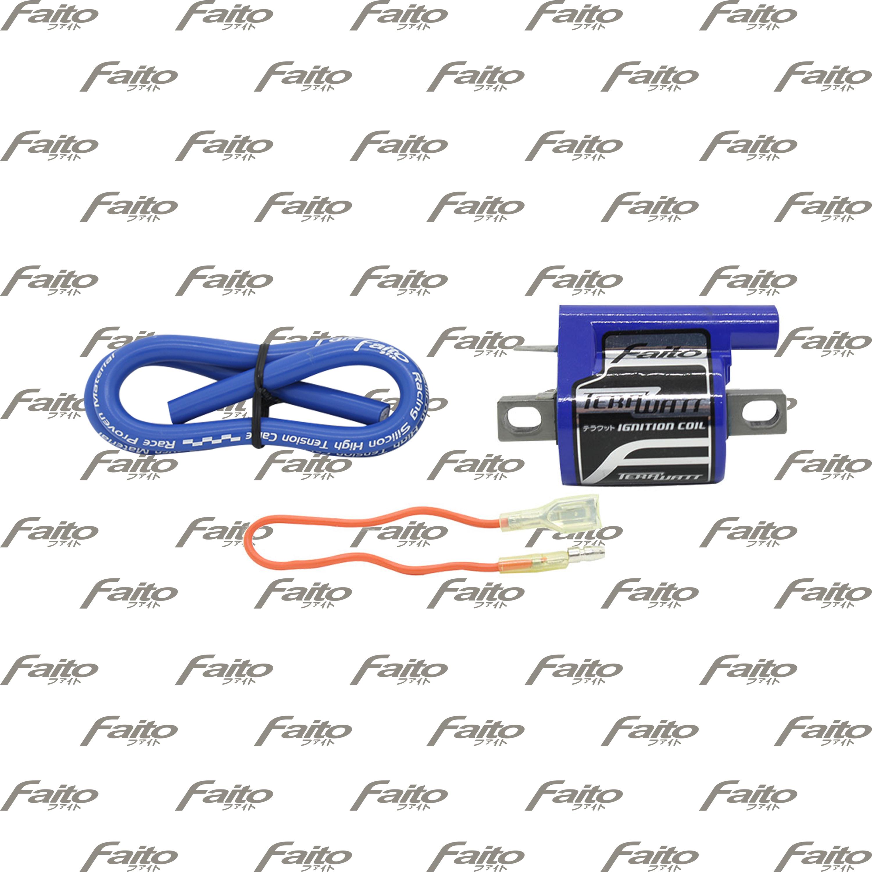 The ignition coil functions to change the voltage that comes out of the battery by 12V to tens of thousands of volts after it comes out of the ignition coil to create electric sparks by the spark plug. The TERAWATT Faito coil is created using pure copper wire winding to produce a voltage of up to 40,000 Volts. This coil is suitable for use in 4 stroke motorbike carburetors.